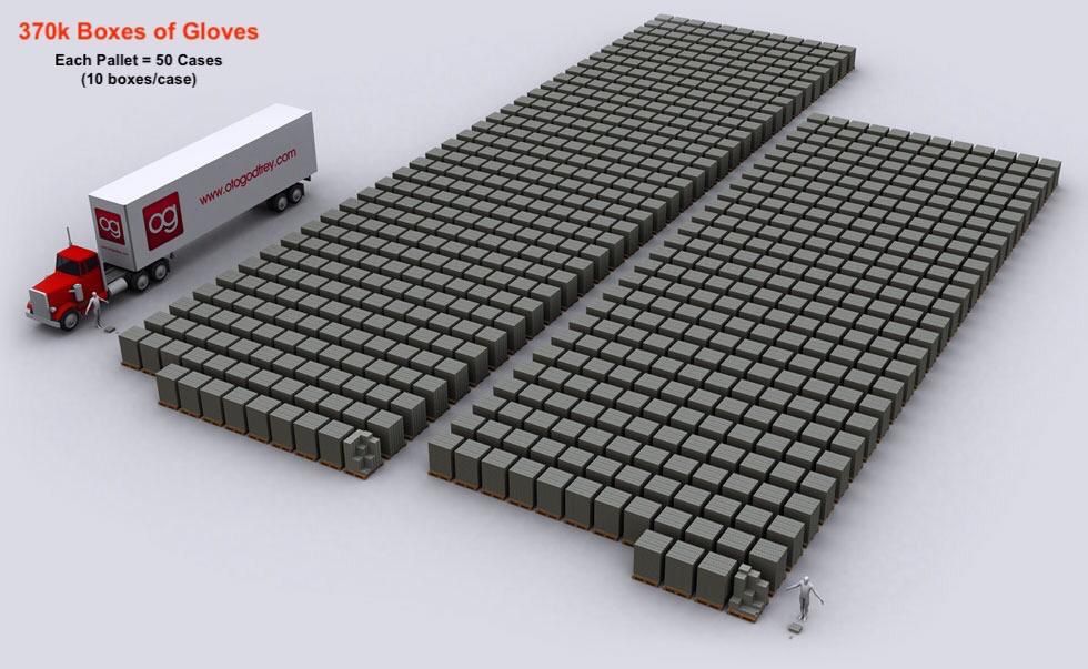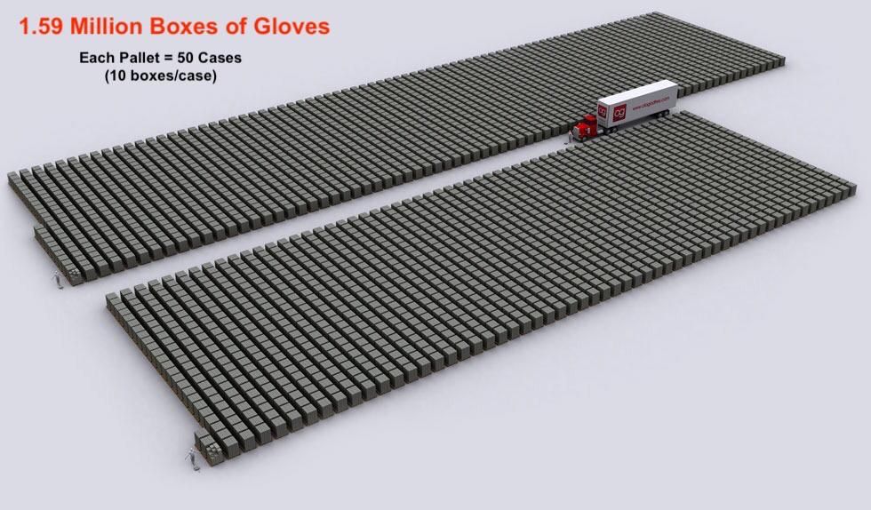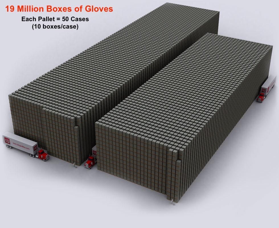 370k Boxes of Gloves 1.59 Million Boxes of Gloves 19 Million Boxes of Gloves 100 Million Boxes of Gloves