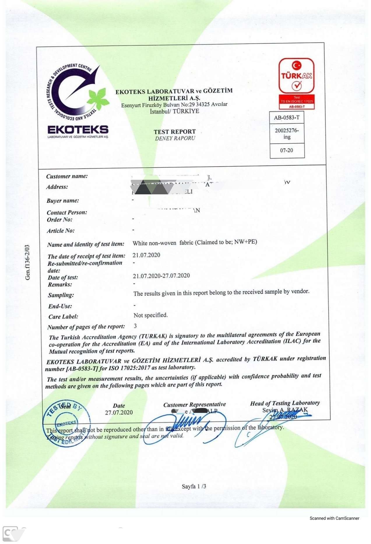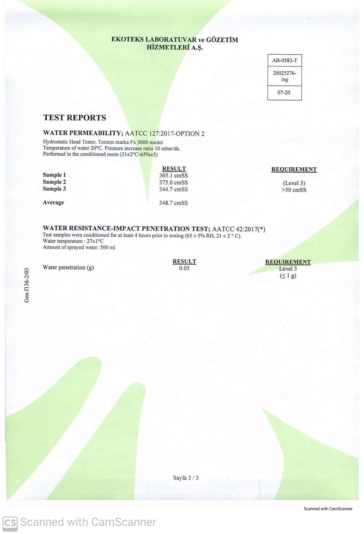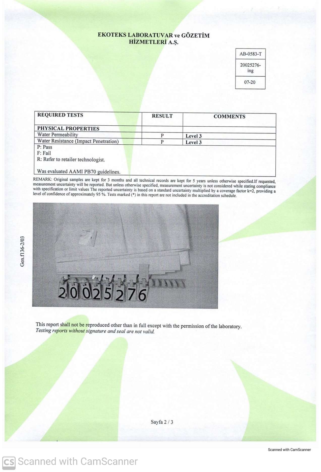 Gli indumenti possono essere puliti e rielaborati almeno cinque volte, i materiali di protezione protettivi devono essere sottoposti a cinque cicli di pulizia e ricondizionamento secondo le istruzioni del produttore prima della prova.